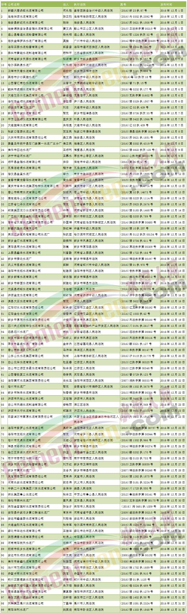 “人無忠信,不可立于世”,對于企業(yè)來說也是如此。誠信是一個企業(yè)生存和發(fā)展的基石,很多水泥企業(yè)在發(fā)展的過程中,往往把誠信看得特別重要,但是當誠信遇上利益之后,很多水泥企業(yè)都是以利為先,誠信則被完全忽視,這也是目前很多國內(nèi)許多小型水泥企業(yè)無法辦強辦大的原因。據(jù)水泥人網(wǎng)統(tǒng)計,2016年12月被通報的失信水泥企業(yè)高達99家,其名單如下:
