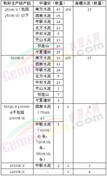 2016年海螺集團(tuán)熟料生產(chǎn)線產(chǎn)能VS中建材熟料生產(chǎn)線產(chǎn)能表