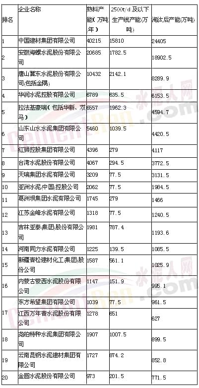 如果淘汰2500t/d及以下水泥生產(chǎn)線,堯柏特種水泥集團有限公司將從現(xiàn)有的第12名,跌至第18名。云南昆鋼水泥建材集團有限公司會從現(xiàn)有的第14名,跌至第19名。吉林亞泰(集團)股份有限公司的位置也會出現(xiàn)微調(diào),從原來的第11名,跌至第13名。有降就會有升,河南同力水泥有限公司從原來的第17名上升至第14名。內(nèi)蒙古蒙西水泥股份有限公司從原來的排名第18名上升至第16名。