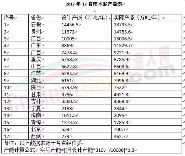 近日,經(jīng)水泥人網(wǎng)統(tǒng)計,現(xiàn)公布各省市的水泥產(chǎn)能現(xiàn)狀如下: