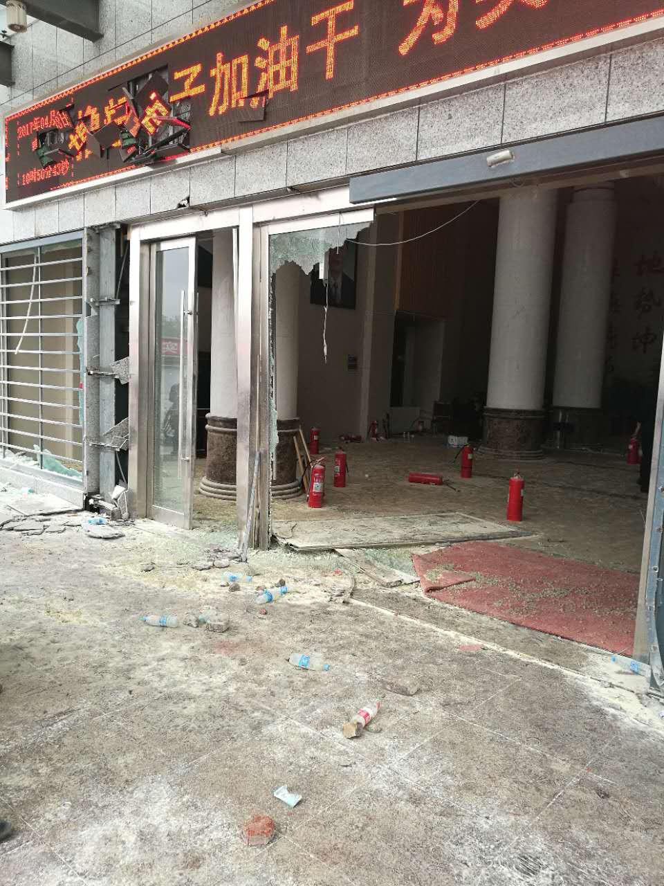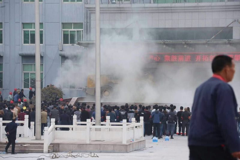濟南山水爆料,八日凌晨,袖纏紅護身符布條、手戴白手套,600多人拿著棍棒聚集在濟南104國道山東山水水泥集團有限公司總部門口,強行沖進大門,對辦公樓的幾個門進行“砸打”,還從廠區(qū)強行把裝載機開上辦公樓門口回廊對辦公樓大門進行蠻擊。此時,集團辦公樓里山水高管和員工只有20余人,多人在防衛(wèi)中被外邊投擲的石塊砸中受重傷,躺在醫(yī)院。