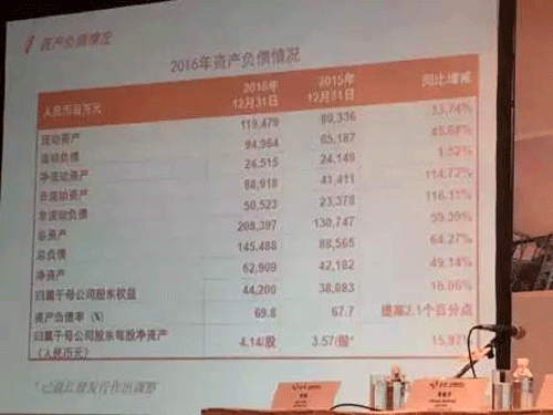 金隅冀東戰(zhàn)略重組后,金隅股份到2016年底總資產(chǎn)同比增加了超過一半,達到2083.9億元。