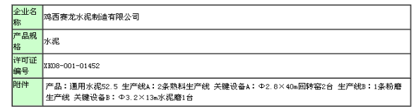 該項(xiàng)目是黑龍江省工信委2012年12月6日以“等量置換”的名義核準(zhǔn)批復(fù)的。按《關(guān)于雞西賽龍水泥制造有限公司等量置換建設(shè)2500t/d熟料新型干法水泥生產(chǎn)線項(xiàng)目(帶純低溫余熱發(fā)電)核準(zhǔn)的批復(fù)》(黑工信原發(fā)[2012]592號(hào)文),同意雞西賽龍水泥公司現(xiàn)有的兩條直徑2.8×40米預(yù)分解窯生產(chǎn)線(總計(jì)年產(chǎn)30萬(wàn)噸),等量置換建設(shè)一條日產(chǎn)2500噸新型干法生產(chǎn)線(年產(chǎn)75萬(wàn)噸)。