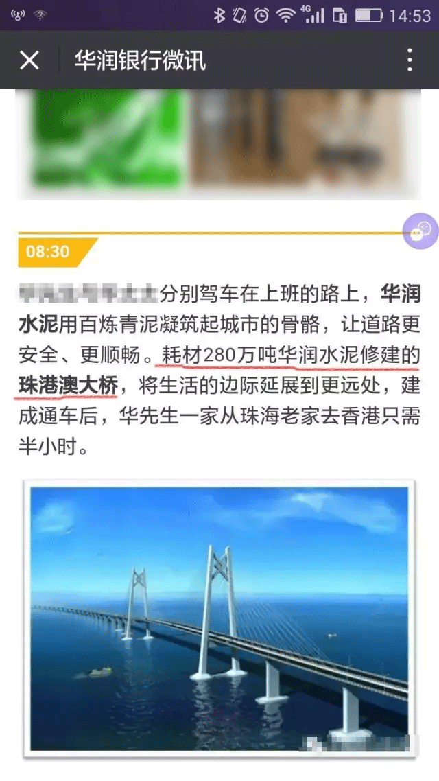 網友截圖 280萬噸華潤水泥用于港珠澳大橋建設