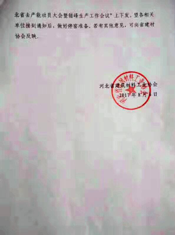 本次下發(fā)的是預通知,正式通知將于今日在“河北省去產(chǎn)能動員大會暨錯鋒生產(chǎn)工作會議”后下發(fā)。