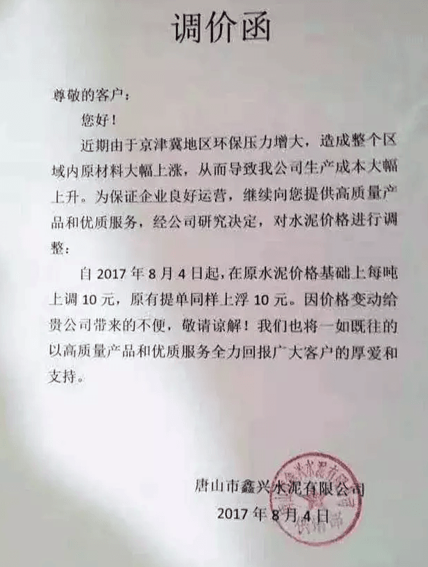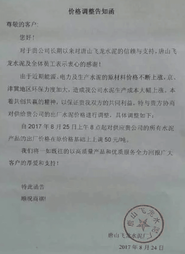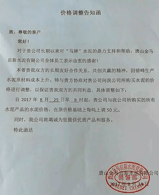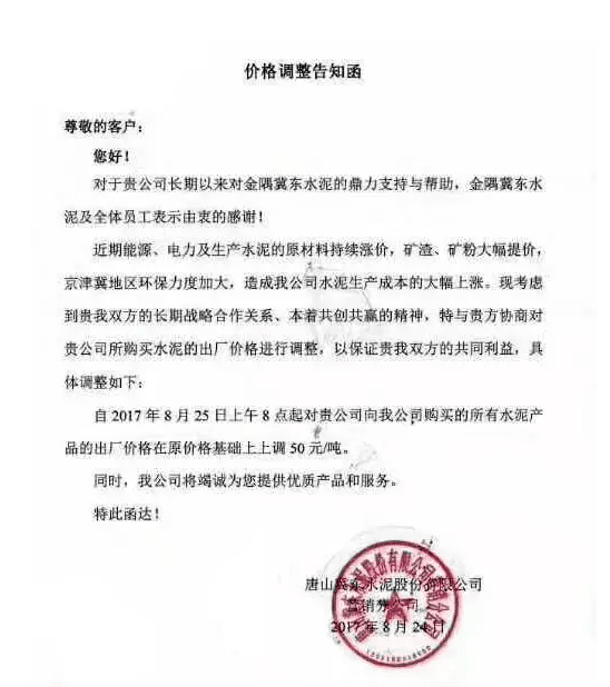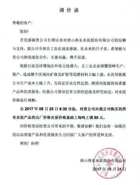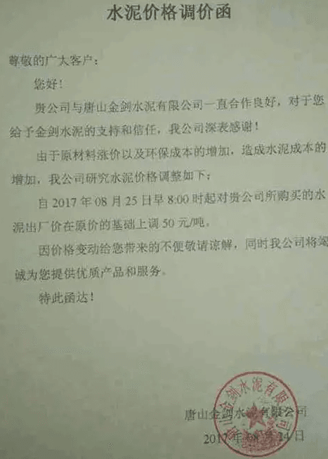 月初水泥人網(wǎng)曾發(fā)布河北省建筑業(yè)協(xié)會下發(fā)《關于河北省水泥行業(yè)去產(chǎn)能實施錯鋒生產(chǎn)的預通知》的消息,通知文件要求河北省內水泥熟料企業(yè)于8月8月0時至8月17日24時實施停窯限產(chǎn)10天。隨后部分企業(yè)便發(fā)布了調價函。調價函內容與本調價內容相似。上調價格幅度在10元~30元不等。8月10日左右滄州地區(qū)也跟漲30元/噸。