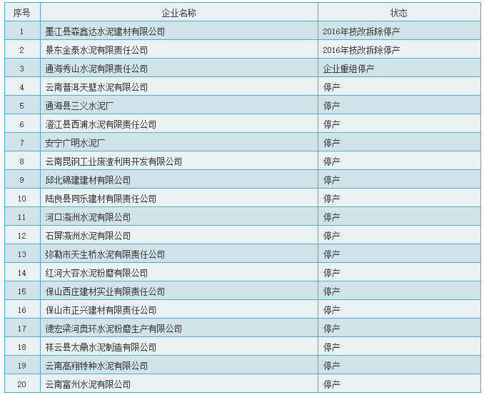云南省有20家企業(yè)處于停產(chǎn)狀態(tài),其中18家粉磨站企業(yè)處于停產(chǎn)狀態(tài),2家水泥熟料生產(chǎn)線(xiàn)處于停產(chǎn)狀態(tài)。