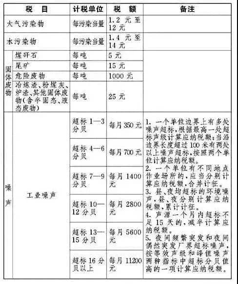 大氣污染物稅額為每污染當(dāng)量1.2-12元;