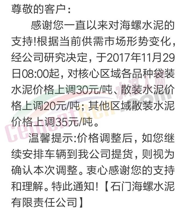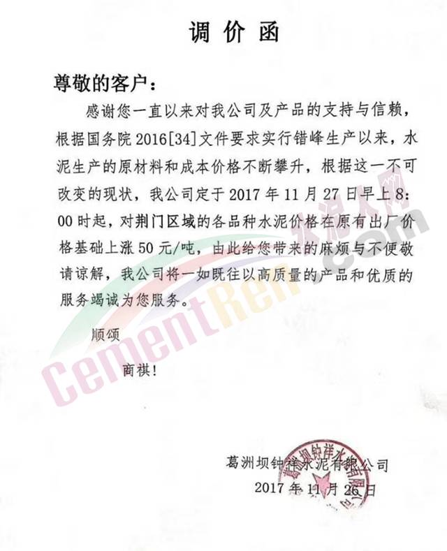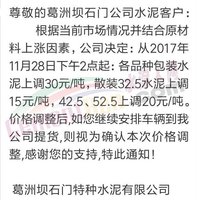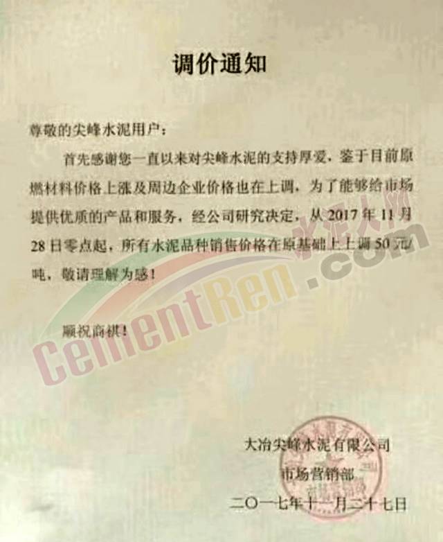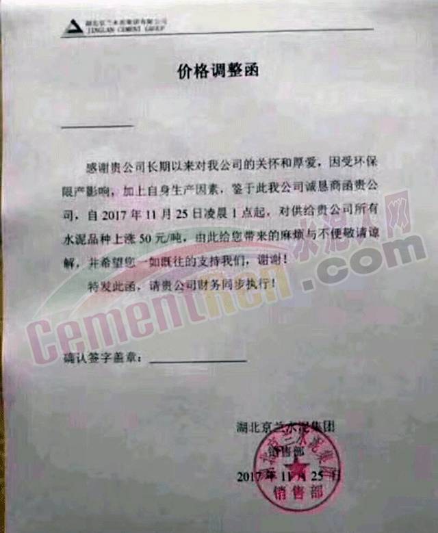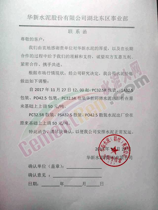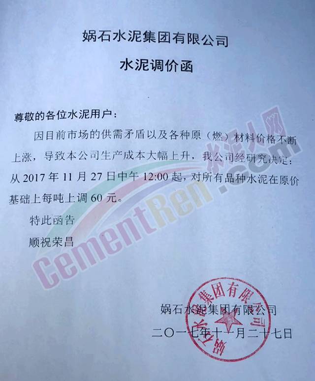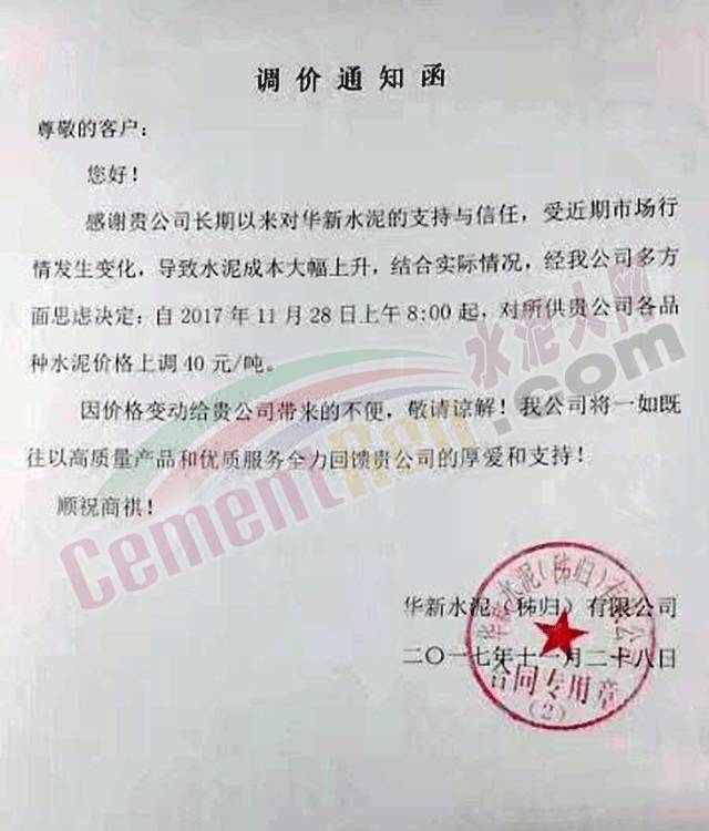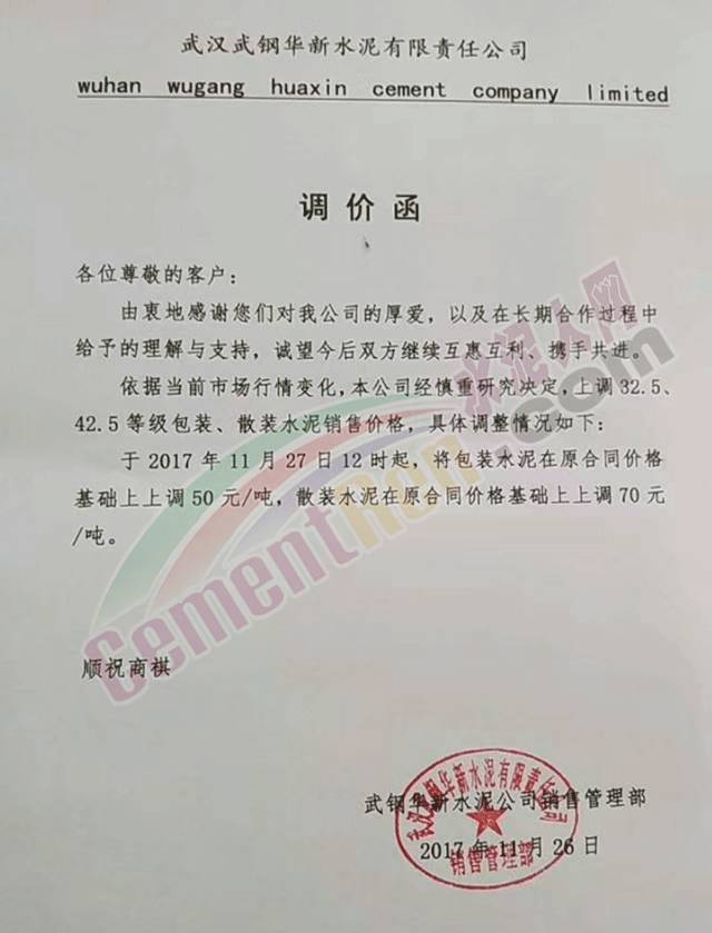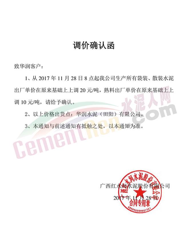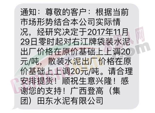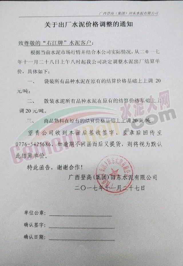 22 登高集團(tuán)田東水泥漲價(jià)函