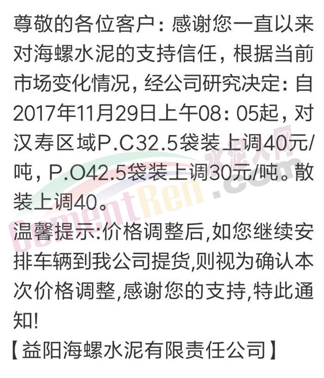 據(jù)水泥人網(wǎng)信息部了解婁底華新等區(qū)域企業(yè)也于同期上調(diào)水泥價(jià)格,各標(biāo)號(hào)水泥也于昨日(29日)統(tǒng)一上調(diào)30元/噸。