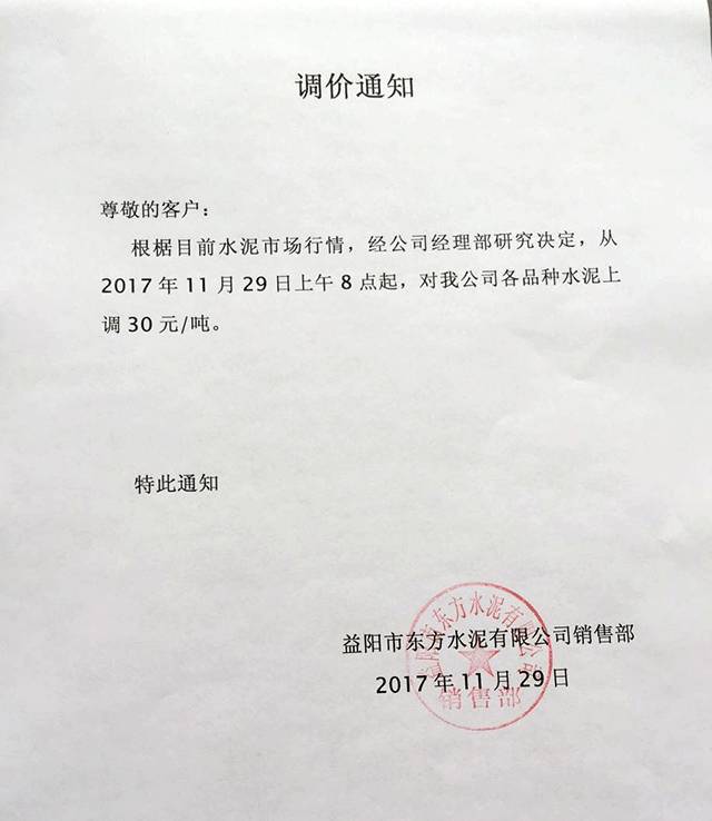 16 寧鄉(xiāng)南方漲價(jià)通知
