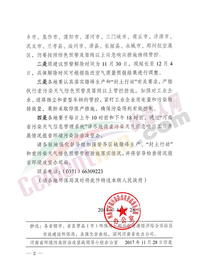 請許昌市、南陽市、信陽市、周口市、駐馬店市、鄧州市、固始縣、鹿邑縣、新蔡縣于11月29日12時啟動橙色預(yù)警,并于30日0時前,實施Ⅱ級以上應(yīng)急響應(yīng)措施;已啟動橙色預(yù)警的鄭州市、開封市、洛陽市、平頂山市、安陽市、鶴壁市、新鄉(xiāng)市、焦作市、濮陽市、漯河市、三門峽市、商丘市、濟源市、鞏義市、蘭考縣、汝州市、滑縣、長垣縣、永城市、鄭州航空港區(qū),仍要按照橙色預(yù)警及Ⅱ級以上應(yīng)急響應(yīng)措施繼續(xù)管控。原建議預(yù)警解除時間為11月30日,現(xiàn)延長至12月4日,具體解除時間可根據(jù)臨近空氣質(zhì)量預(yù)報結(jié)果進行調(diào)整。