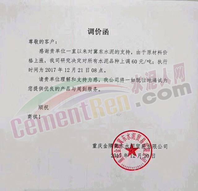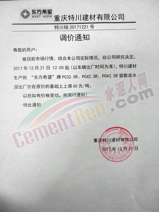 近兩日四川成都地區(qū)以及重慶市各企業(yè)紛紛上調(diào)出廠價,上調(diào)幅度在50-60元/噸。