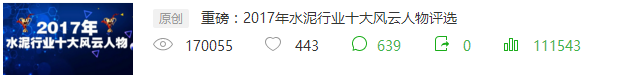 點(diǎn)評(píng):通過此次的評(píng)選篩選出水泥行業(yè)的網(wǎng)絡(luò)紅人------“人氣王”。水泥行業(yè)的健康發(fā)展離不開這些具有號(hào)召力企業(yè)家的影響及推動(dòng)。