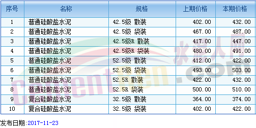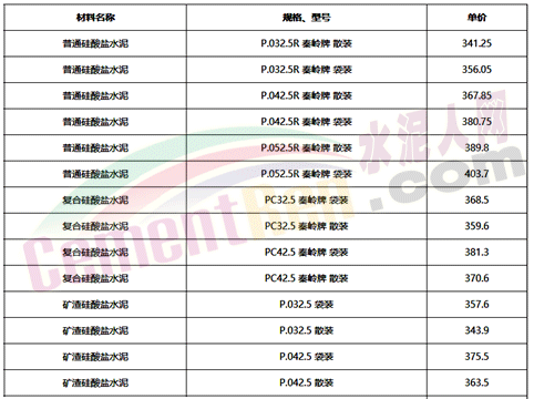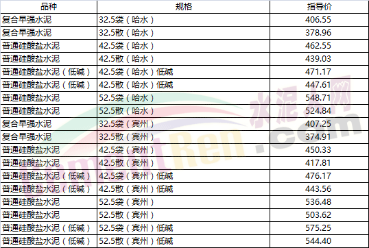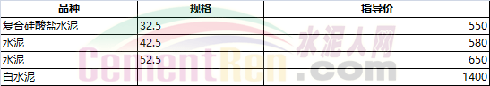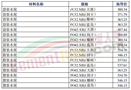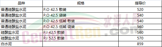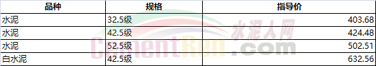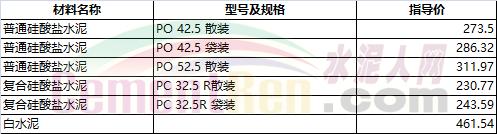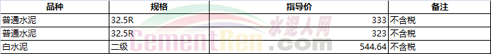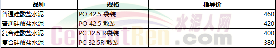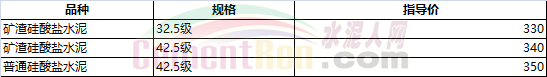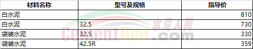部分省市水泥指導(dǎo)價(jià)如下: