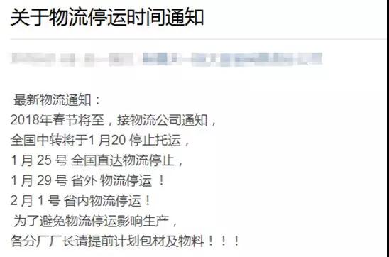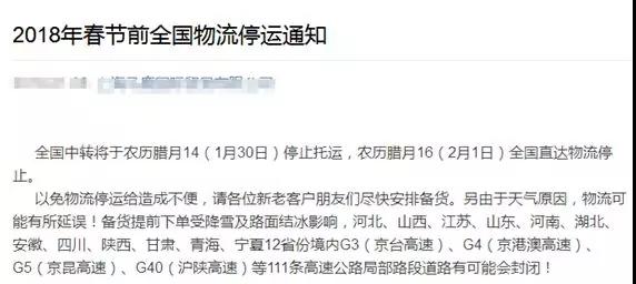 據(jù)悉,全國物流放假時間已基本確定,各地物流停運時間表大體如下(確實比往年提前了):