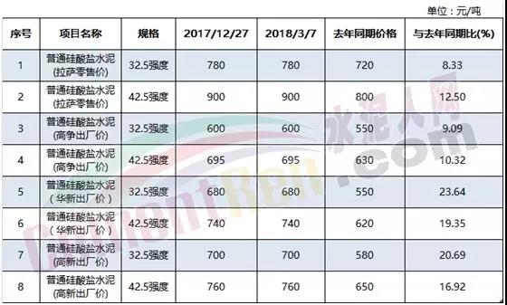 水泥人網(wǎng)信息中心數(shù)據(jù)顯示西藏拉薩區(qū)域自上年未到目前的水泥價(jià)格一直穩(wěn)定無(wú)變動(dòng),其價(jià)位仍處于全國(guó)最高水平。
