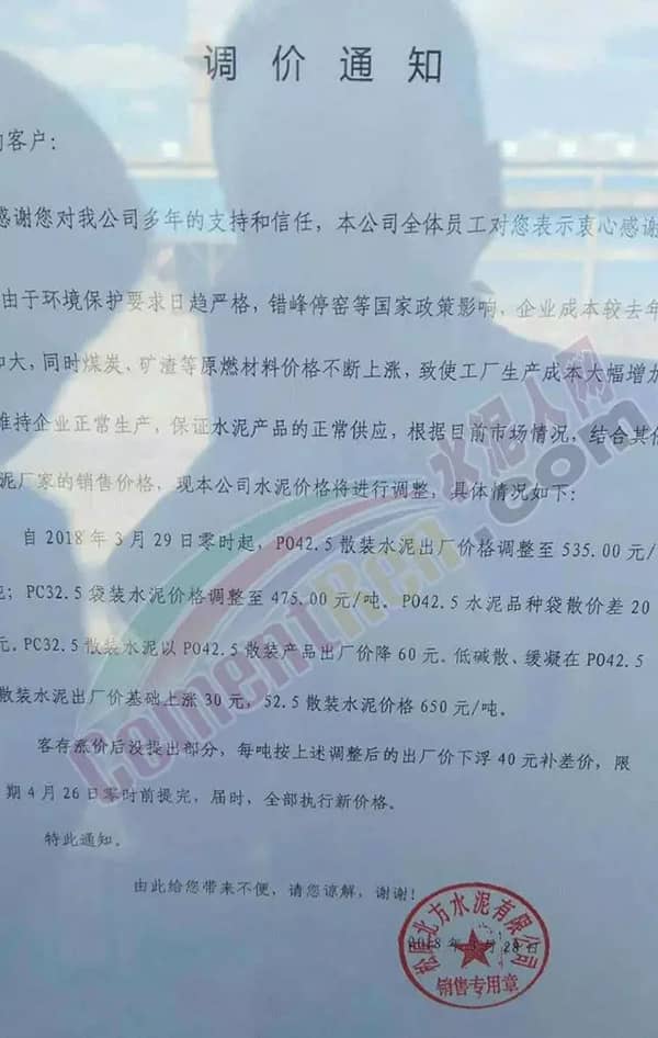調(diào)價通知稱,客存漲價后沒有提出部分,每噸按上述調(diào)整后的出廠價下浮40元補(bǔ)差價,限期4月26日零時前提完。屆時,將全部執(zhí)行新價格。