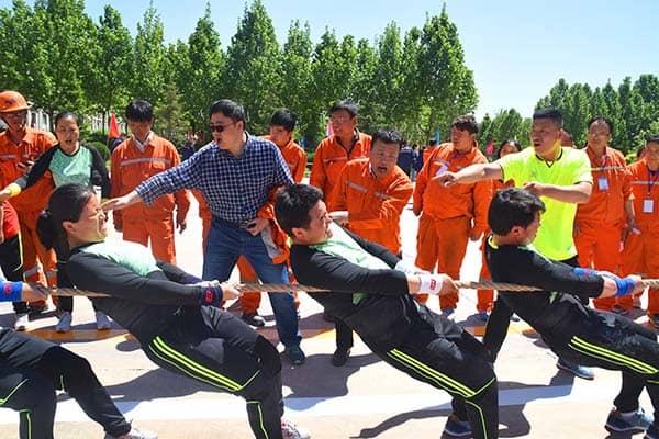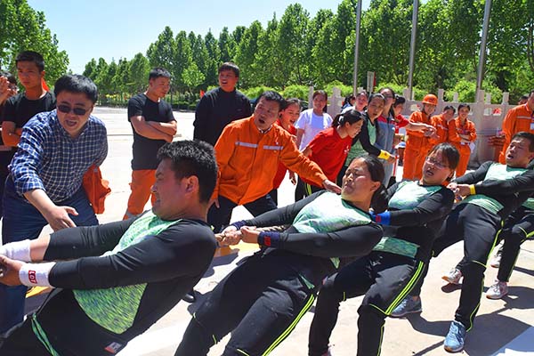 正式比賽前,現(xiàn)場工作人員帶領大家進行了拉伸運動。當比賽的哨聲響起,各公司的隊員們雙手緊握長繩,口中一齊高呼著“一二、一二”,團結(jié)一心,憋足了勁拼命向后拉,各公司啦啦隊為比賽隊員吶喊加油,哨子聲、吶喊聲,此起彼伏,飄蕩在贊皇金隅辦公樓廣場上空。經(jīng)過激烈的角逐,最終,鼎鑫——靈壽區(qū)域公司力壓群雄拔得頭籌取得冠軍,易縣——淶水區(qū)域公司榮獲亞軍,贊皇金隅公司榮獲季軍。