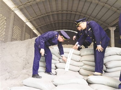 執(zhí)法人員對涉嫌侵犯商標(biāo)專用權(quán)的水泥進行查封