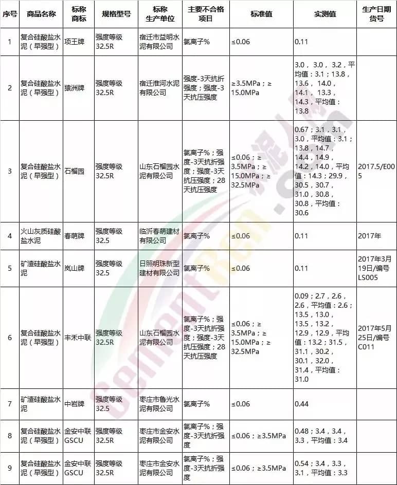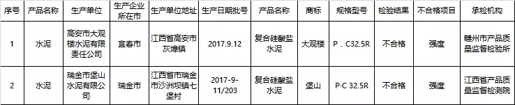 今年以來已經(jīng)有多個(gè)省市發(fā)布了水泥抽檢不合格產(chǎn)品名單,詳情如下: