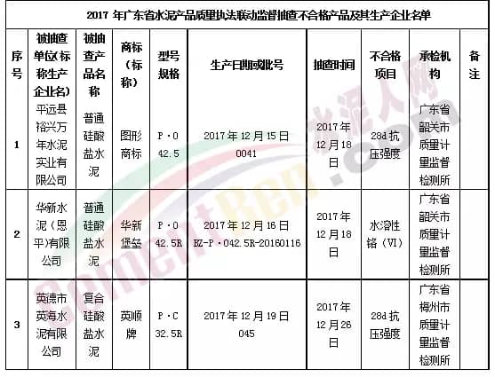 4月28日,廣東省質(zhì)量技術(shù)監(jiān)督局官網(wǎng)發(fā)布2017年廣東省水泥產(chǎn)品質(zhì)量執(zhí)法聯(lián)動(dòng)監(jiān)督抽查結(jié)果。其中發(fā)現(xiàn)不合格的項(xiàng)目涉及“水溶性鉻(Ⅵ)”“28天抗壓強(qiáng)度”兩個(gè)項(xiàng)目。