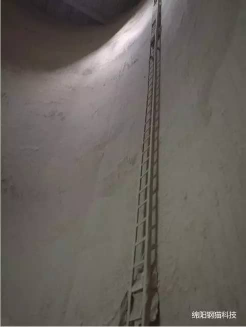 該庫直徑18米,庫容量10000噸,5年未清理,庫內(nèi)物料結(jié)垢嚴(yán)重。