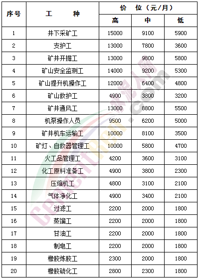 煤礦工人的工資,以山西長治市為例。依據(jù)長治市2017年勞動(dòng)力市場工資指導(dǎo)價(jià)位井下采礦工月工資額在1.5萬元~5900元之間。