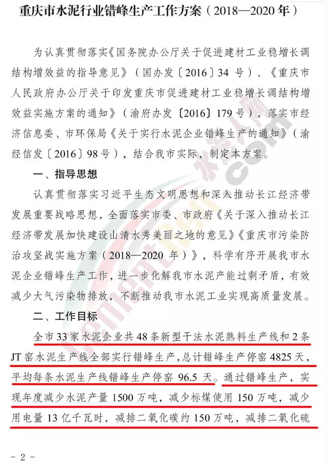 通過錯(cuò)峰生產(chǎn),實(shí)現(xiàn)年度減少水泥產(chǎn)量1500萬噸,減少標(biāo)煤使用150萬噸,減少用電量13億千瓦時(shí),減排二氧化碳約150萬噸,減排二氧化硫約5萬噸,減排氮氧化物約2萬噸,減排粉塵約40萬噸。