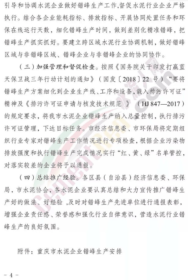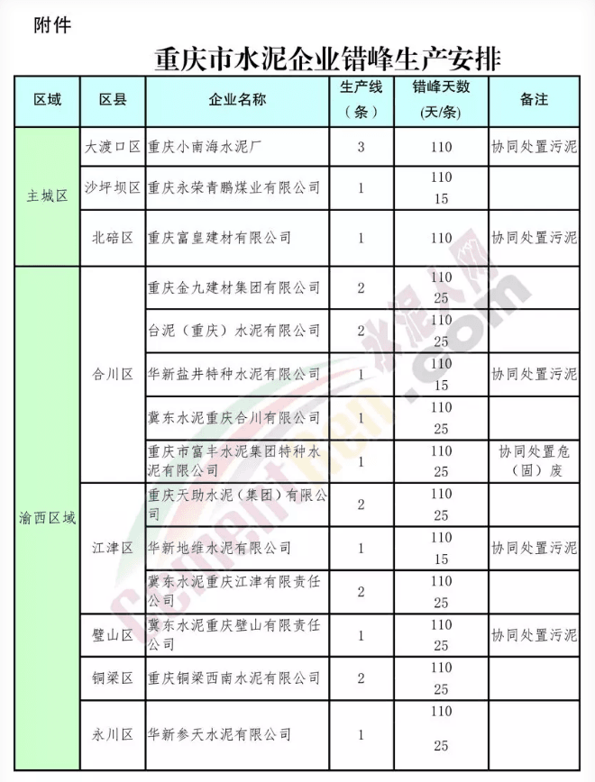 主城區(qū)和渝西區(qū)域內(nèi)企業(yè)(除綦江區(qū)、南川區(qū)、萬盛經(jīng)開區(qū))每年錯(cuò)峰停窯總天數(shù)110天,其中:1-2月停窯20天,6-8月停窯35天,11-12月停窯20天,其他時(shí)段錯(cuò)峰停窯35天;