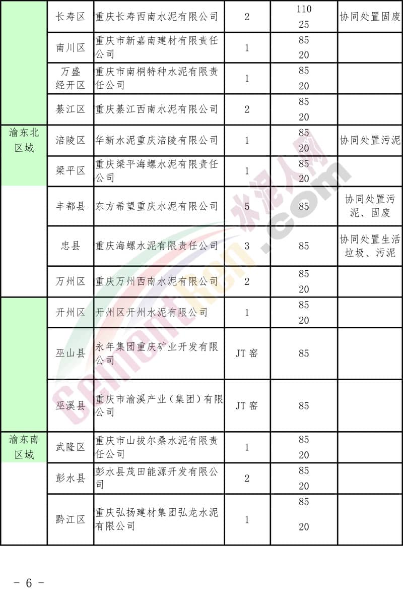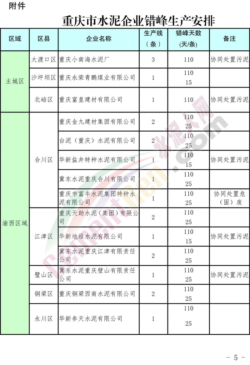 主城區(qū)和渝西區(qū)域內(nèi)企業(yè)(除綦江區(qū)、南川區(qū)、萬(wàn)盛經(jīng)開(kāi)區(qū))每年錯(cuò)峰停窯總天數(shù)110天,其中:1-2月停窯20天,6-8月停窯35天,11-12月停窯20天,其他時(shí)段錯(cuò)峰停窯35天;