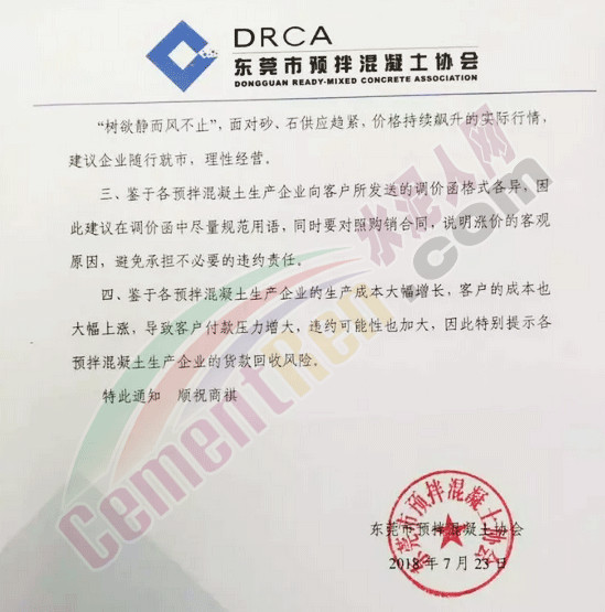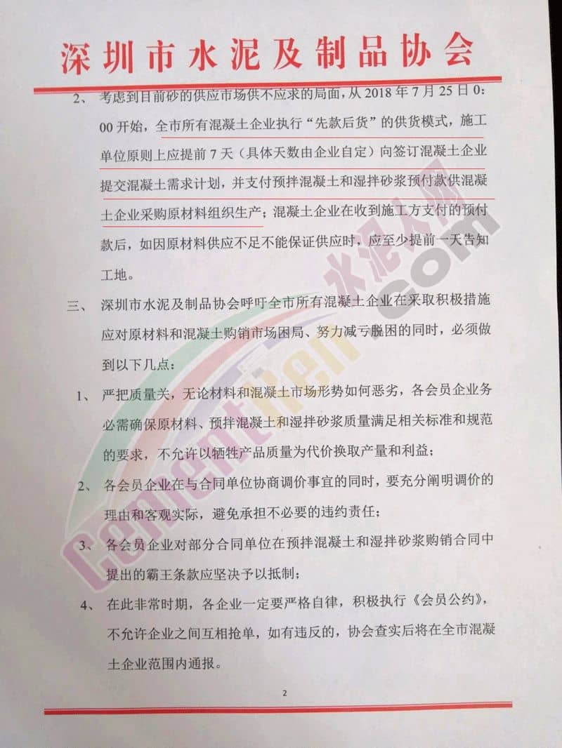 1、從2018年7月25日0點(diǎn)開始,全市所有混凝土企業(yè)所有標(biāo)號的混凝土銷售單價全部按照2018年第6期“深圳建設(shè)工程價格信息”公布的對應(yīng)等級預(yù)拌混凝土和濕拌砂漿單價作為最低銷售單價;