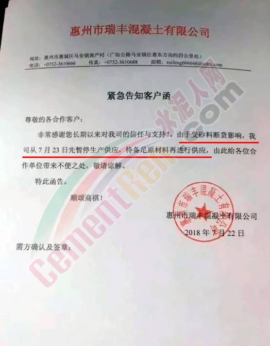 2、考慮到目前砂的供應(yīng)市場供不應(yīng)求的局面,從2018年7月25日0點(diǎn)開始,全市所有混凝土企業(yè)執(zhí)行“先款后貨”的供貨模式,施工單位原則上應(yīng)提前7天(具體天數(shù)由企業(yè)自定)向簽訂混凝土企業(yè)提交混凝土需求計劃,并支付預(yù)拌混凝土和濕拌砂漿預(yù)付款供混凝土企業(yè)采購原材料組織生產(chǎn);混凝土企業(yè)在收到施工方支付的預(yù)付款后,如因原材料供應(yīng)不足不能保證供應(yīng)時,應(yīng)至少提前一天告知工地。
