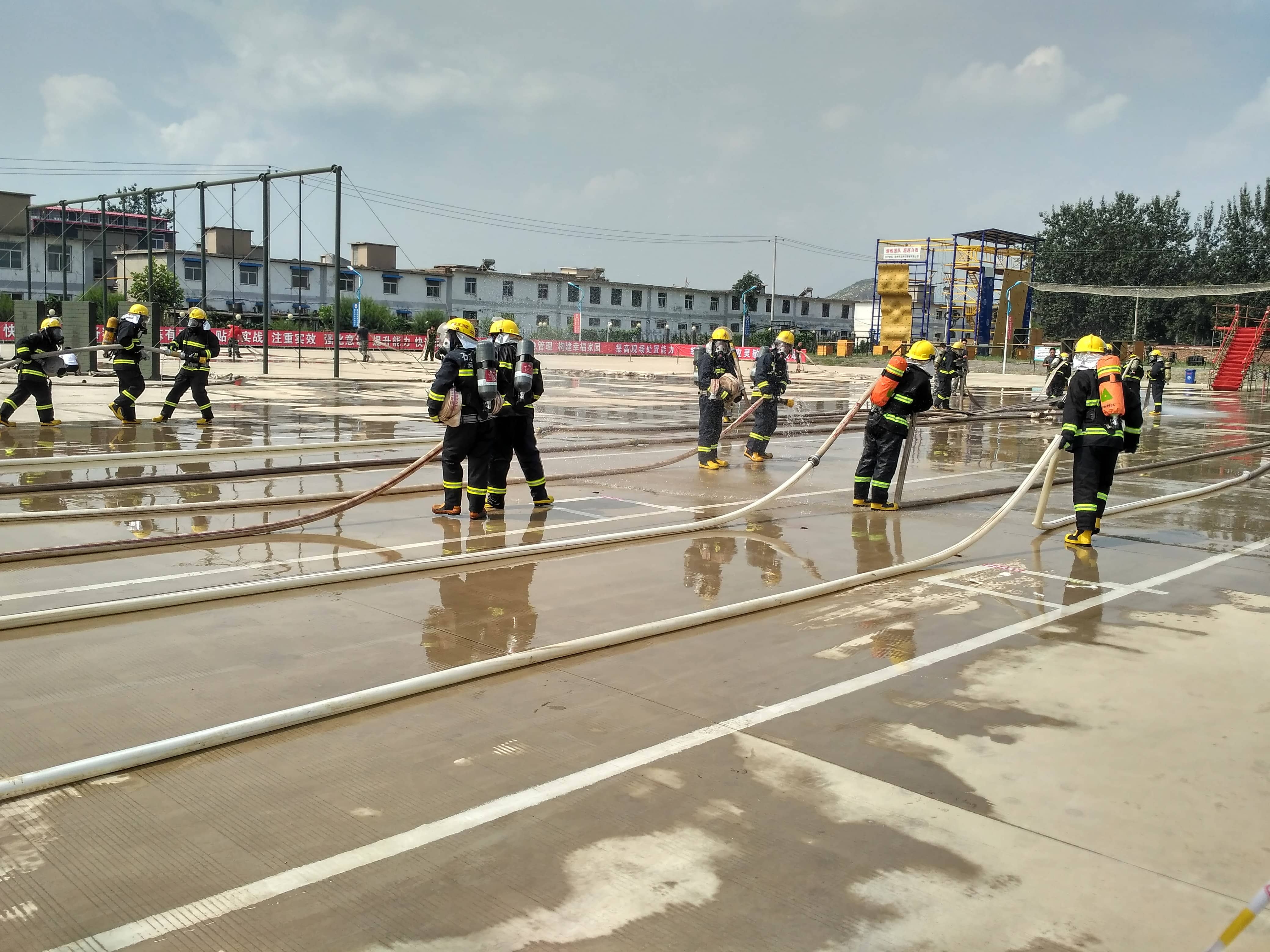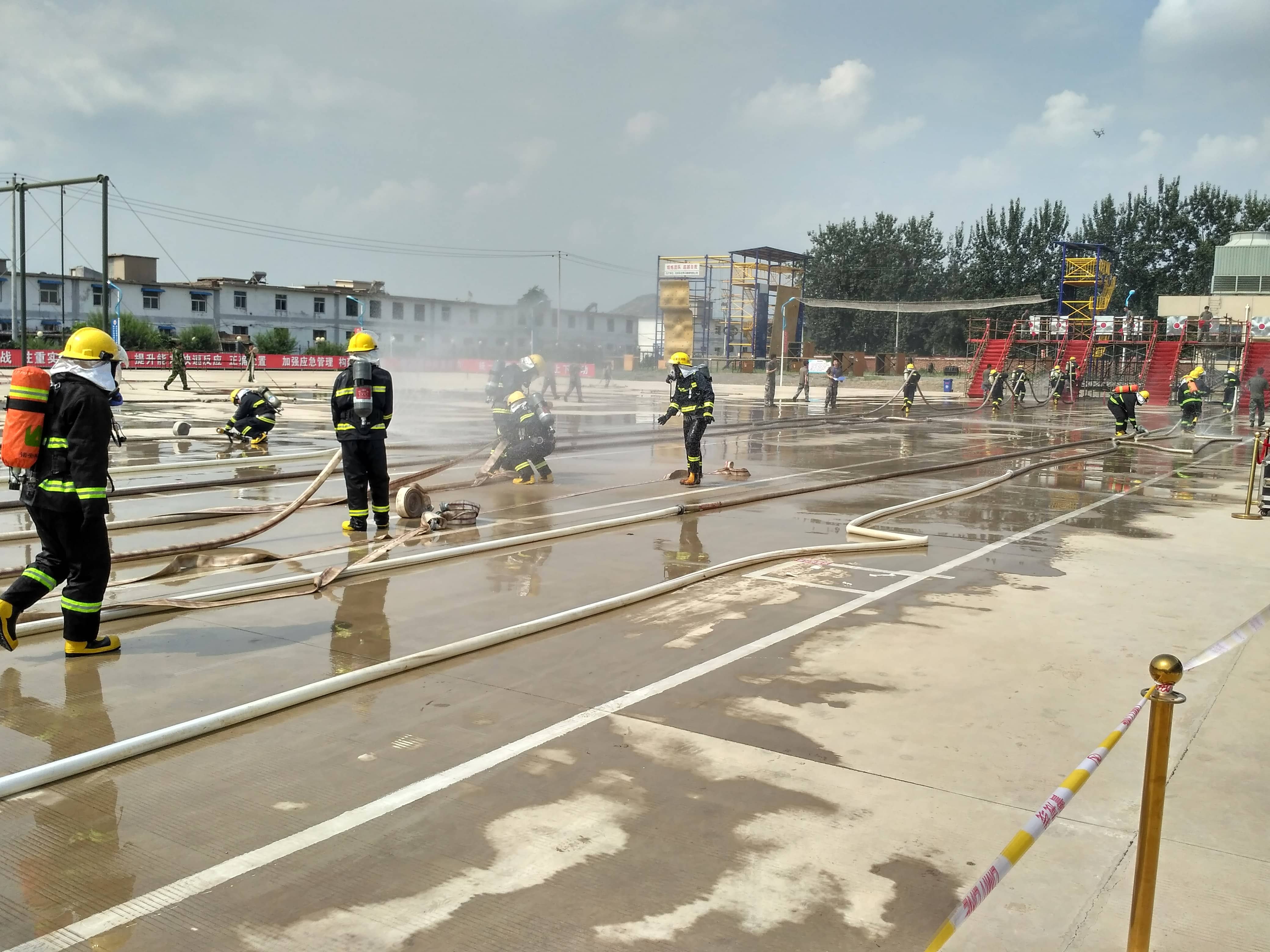 本次比武大賽以“實戰(zhàn)、實用、實力、實效”為主題,包括綜合體能、帶壓快速堵漏、單兵破拆救人、化工裝置初期火災(zāi)處置、理論知識考核五項內(nèi)容。