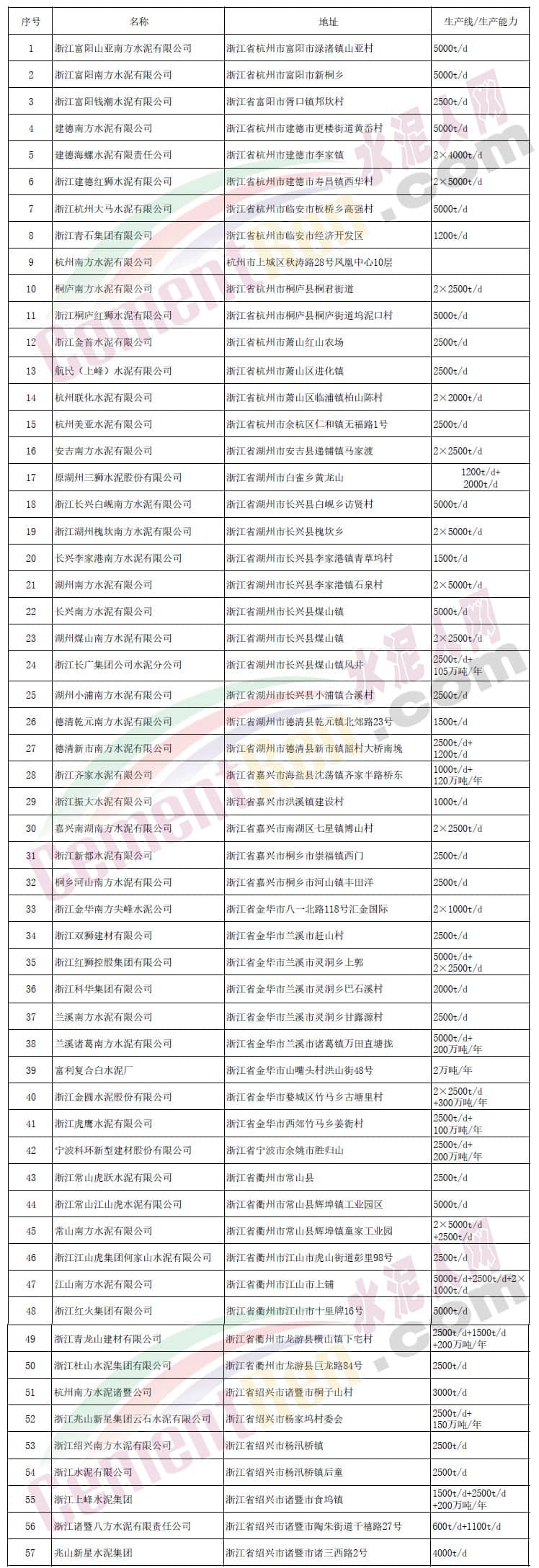 浙江省部分水泥企業(yè)名單