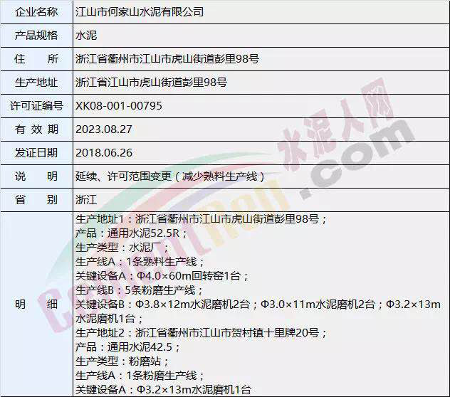 此次用于置換的浙江衢州市何家山水泥有限公司1000t/d熟料產(chǎn)能沒(méi)有生產(chǎn)許可證,何家山水泥有限公司現(xiàn)有許可證許可內(nèi)容不包括此條1000t/d熟料產(chǎn)能。根據(jù)工信部原[2017]337號(hào)文件要求:已超過(guò)國(guó)家明令淘汰期限的落后產(chǎn)能,已享受獎(jiǎng)補(bǔ)資金和政策支持的退出產(chǎn)能,無(wú)生產(chǎn)許可的水泥熟料產(chǎn)能,均不得用于產(chǎn)能置換。