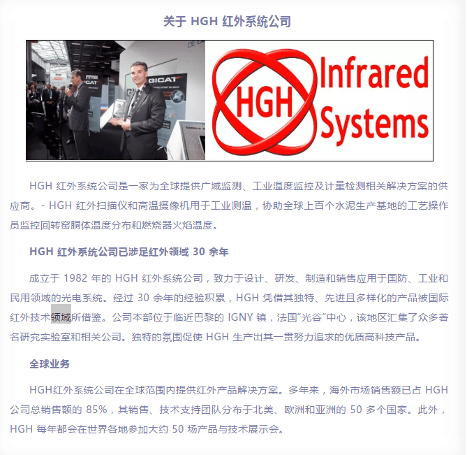 圍繞回轉(zhuǎn)窯溫度監(jiān)測的設(shè)備廠家層出不窮。但能始終如一專注于紅外測溫領(lǐng)域的企業(yè)并不多,精益求精,只為做好高溫下精準(zhǔn)測溫的紅外系統(tǒng)更少。目前HGH紅外線性掃描儀已被國內(nèi)多家知名水泥集團(tuán)選擇并廣泛應(yīng)用于各子公司。如:中國建材、海螺集團(tuán)、華潤水泥等。
