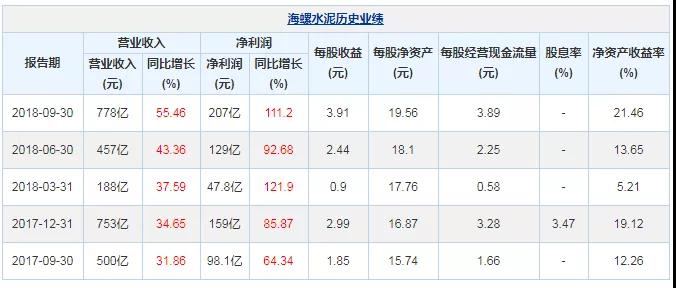 2018年利潤(rùn)同比增長(zhǎng)最高的水泥企業(yè)
