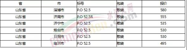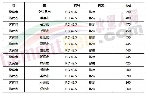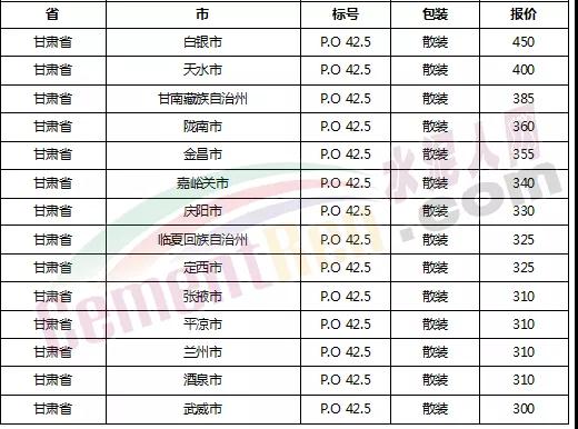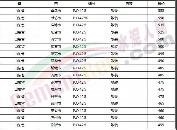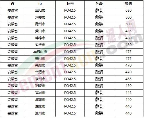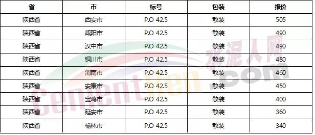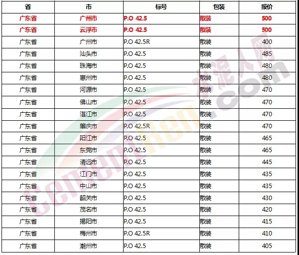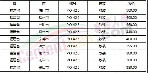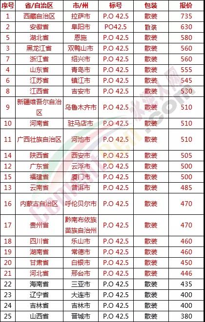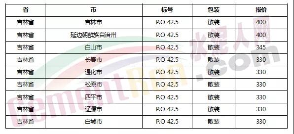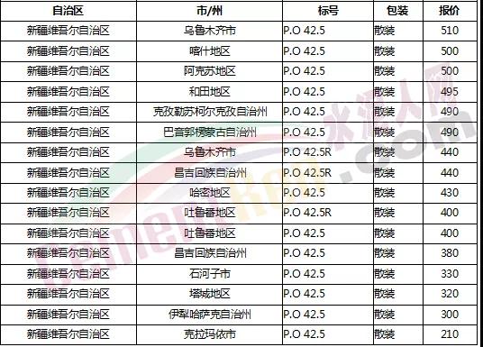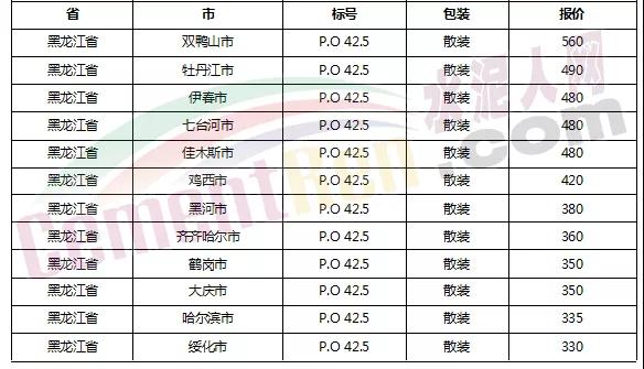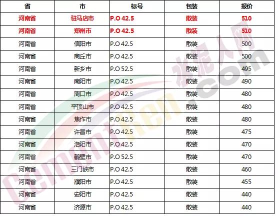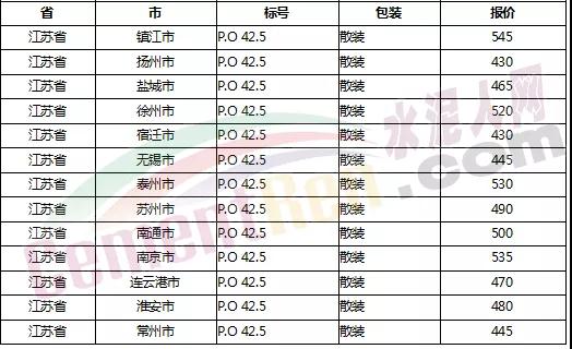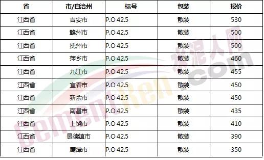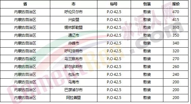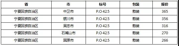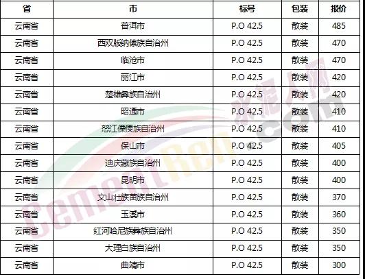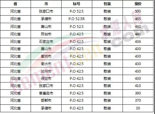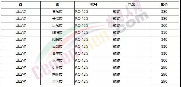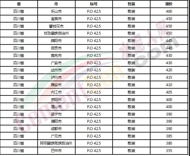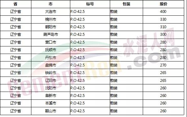 以下是各省主要城市水泥價格: