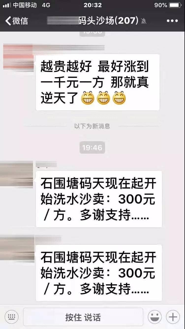 昨日(27日)下午17點35某碼頭沙廠通知晚七點上調(diào)水洗沙價格250元/方,晚19點46分又再次通知水洗沙價格執(zhí)行300元/噸。