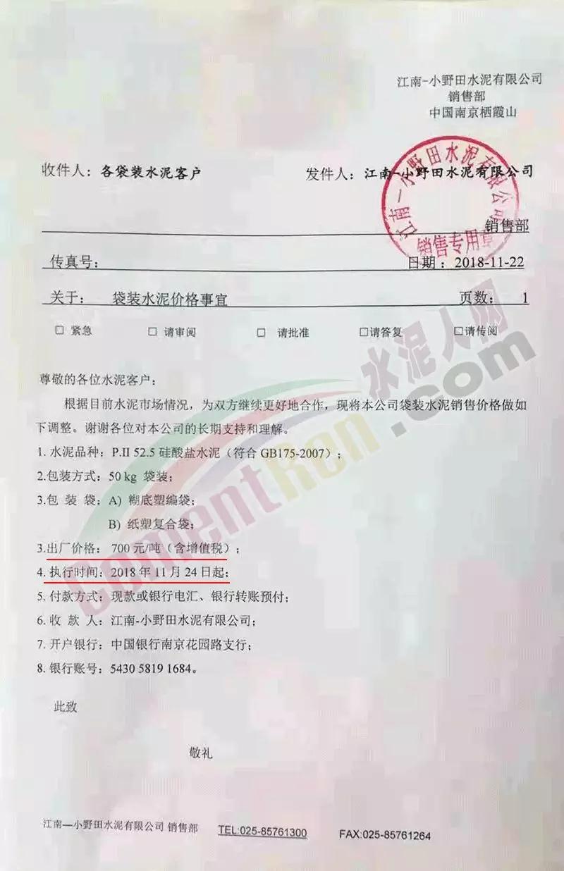 隨著各區(qū)域的價格上調(diào),目前各地水泥價格達到了一個新的高度。大連小野田P.II52.5水泥逼近900元/噸。江南-小野田通知函,一次性大漲50元,價格高達700元/噸。