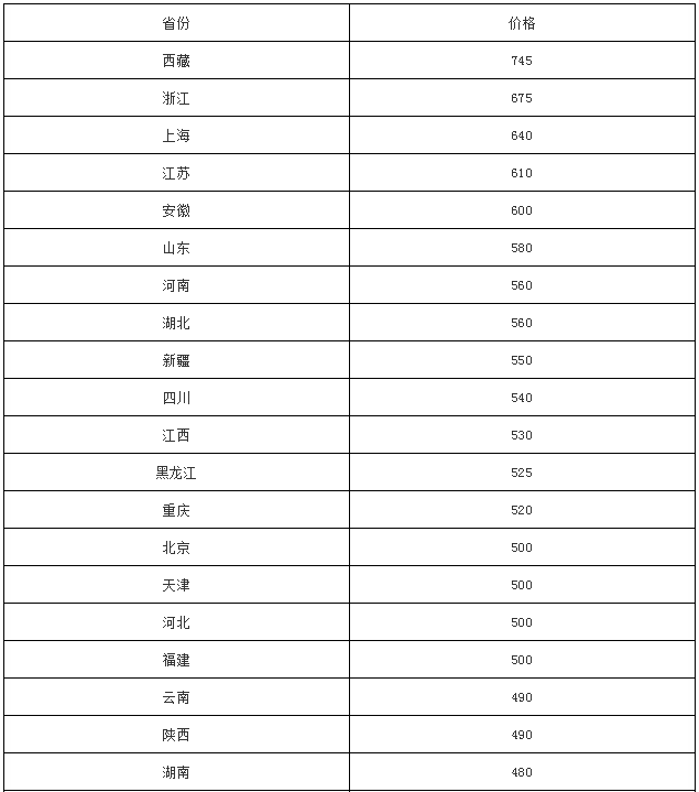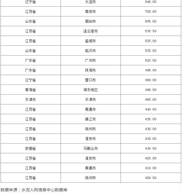 水泥人網(wǎng)信息中心監(jiān)控數(shù)據(jù)顯示,PO42.5散裝水泥最高價格還是在西藏高原,最高價格為745元,第二名為浙江區(qū)域,最高價為675元/噸。