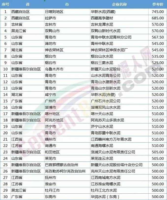其次是山東,山東省PO42.5水泥價格幾乎是全境過500元/噸,直指600元/噸,氣勢上不輸江浙區(qū)域。據(jù)了解,近期山東省部分主導企業(yè)門庭若市,驚現(xiàn)日夜排隊現(xiàn)象。