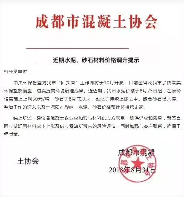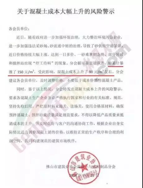 信件指出,“水泥企業(yè)無序漲價(jià),引發(fā)市場(chǎng)混亂”,“且告知混凝土企業(yè),如不在漲價(jià)函上簽字確認(rèn),將予以停止水泥供應(yīng),此舉還從側(cè)面引發(fā)了預(yù)拌混凝土其他原材料(如粉煤灰、礦粉等)的漲價(jià)趨勢(shì),對(duì)本來已經(jīng)岌岌可危的混凝土企業(yè)造成致命一擊。”
