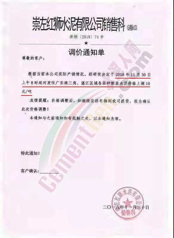 水泥人網(wǎng)通訊員消息,崇左紅獅水泥已于昨日率先上調(diào)了珠三角及湛江區(qū)域水泥價(jià)格,上調(diào)幅度10元/噸。
