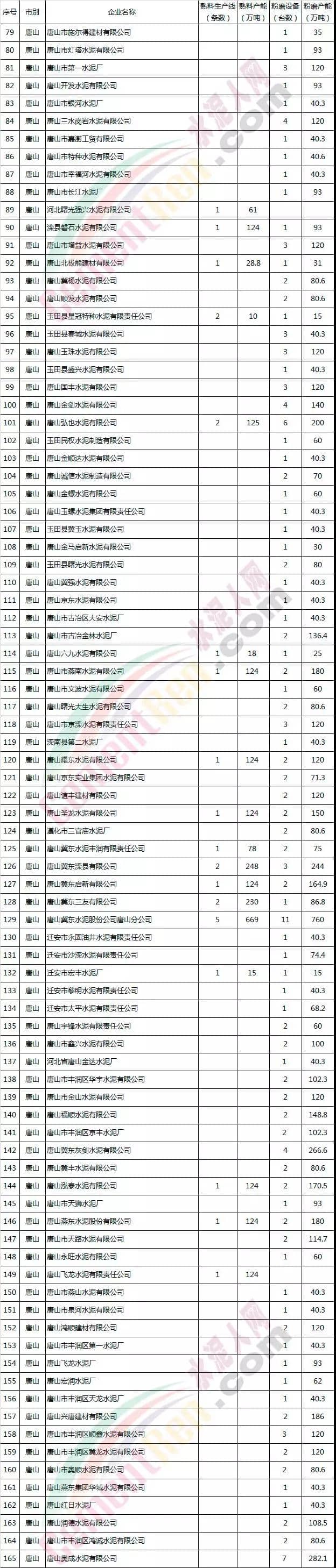 唐山市部分水泥熟料生產(chǎn)企業(yè)名單