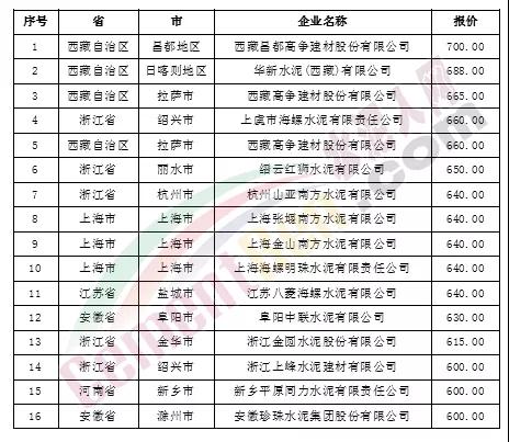 備注:上述報價數(shù)據(jù)為水泥人網(wǎng)信息中心人工采集,如與實際成交價格不符,請以實際成交為準。更多企業(yè)報價數(shù)據(jù)請聯(lián)系我們。