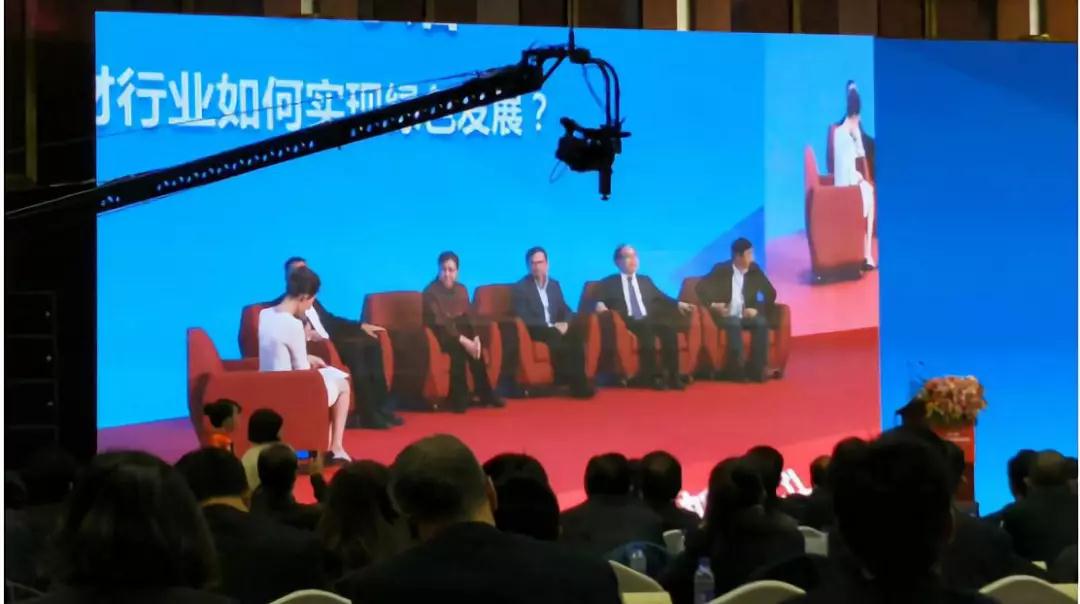 北京大學(xué)國家競爭力研究院院長郭云濤、中國建材集團有限公司總工程師、中國建筑材料科學(xué)研總院院長姚燕、華新水泥股份有限公司總裁長李葉青、上海建材(集團)有限公司總裁趙健、中國水泥協(xié)會常務(wù)副會長孔祥忠針對“建材行業(yè)如何實現(xiàn)綠色發(fā)展”展開討論。