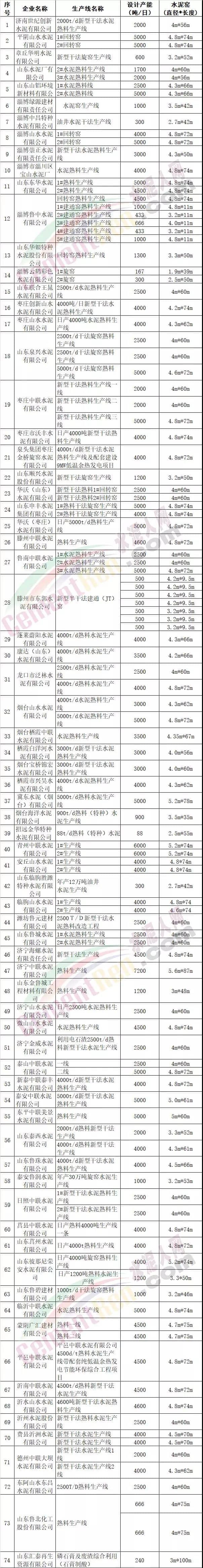 山東省部分水泥熟料企業(yè)名單