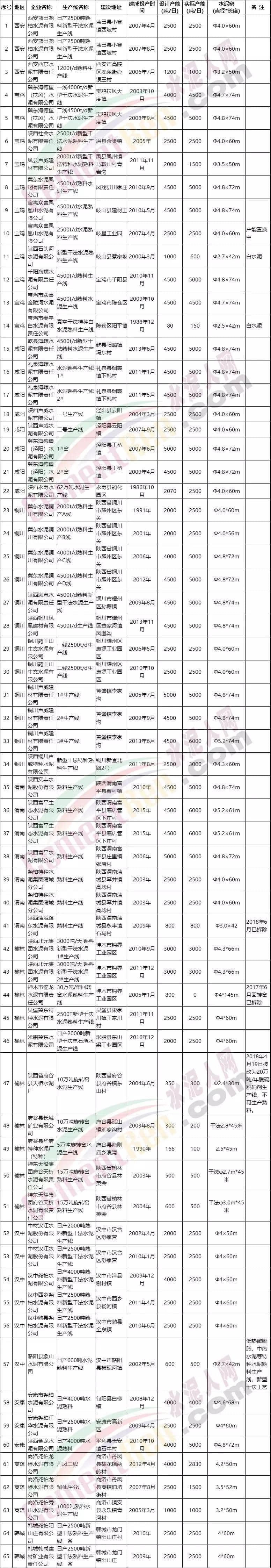 陜西省部分水泥熟料企業(yè)名單